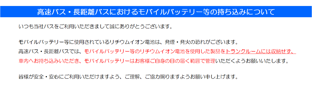 手回り品の、破損・紛失・盗難等の損害が生じても、弊社はその責を一切負いかねますのでご了承ください。 【愛玩動物の取扱について】 | ||||||||||||||